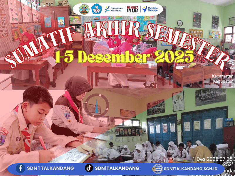 Siswa SDN 1 Talkandang mengikuti kegiatan Sumatif Akhir Semester (SAS) Semester 1 yang dilaksanakan pada tanggal 1 sampai dengan 5 Desember 2025 sebagai bagian dari proses evaluasi pembelajaran untuk mengukur dan menilai kompetensi kognitif siswa dalam memahami materi pembelajaran yang telah disampaikan oleh guru selama satu semester. Kegiatan ini bertujuan untuk mengetahui tingkat pencapaian hasil belajar siswa, sekaligus menjadi bahan evaluasi bagi guru dalam merencanakan tindak lanjut pembelajaran agar kualitas proses belajar mengajar di SDN 1 Talkandang dapat terus meningkat.